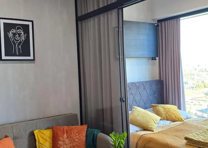 都市の景色を見渡すP&B Global Studio Premium カトヴィツェは,カトヴィツェのシレジア大学から徒歩で20分です. このアパ-トはカトヴィツェ鉄道駅から0.7キロメ-トル離れた所で,Katowice Sadowaバス停すぐ近くの場所にあります.